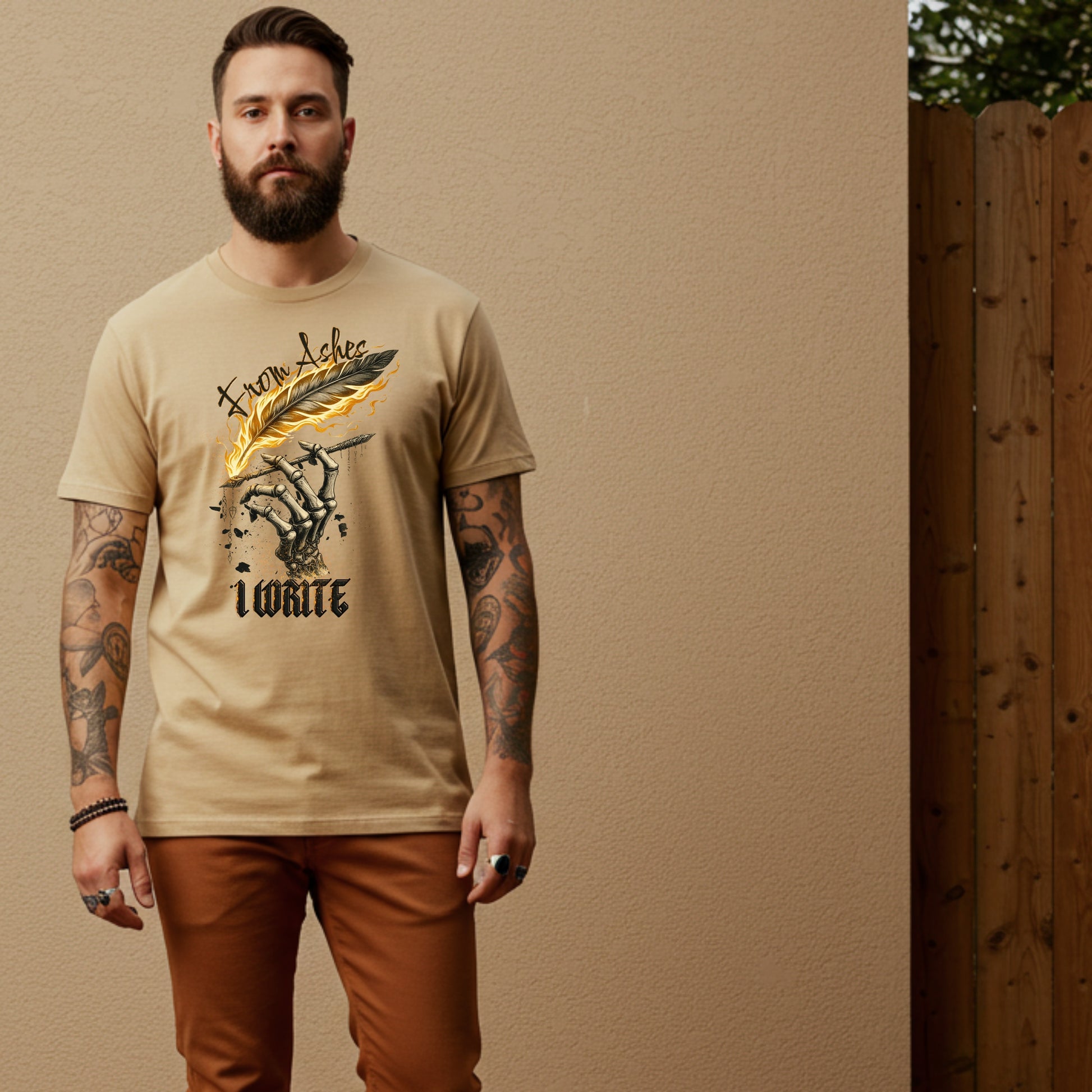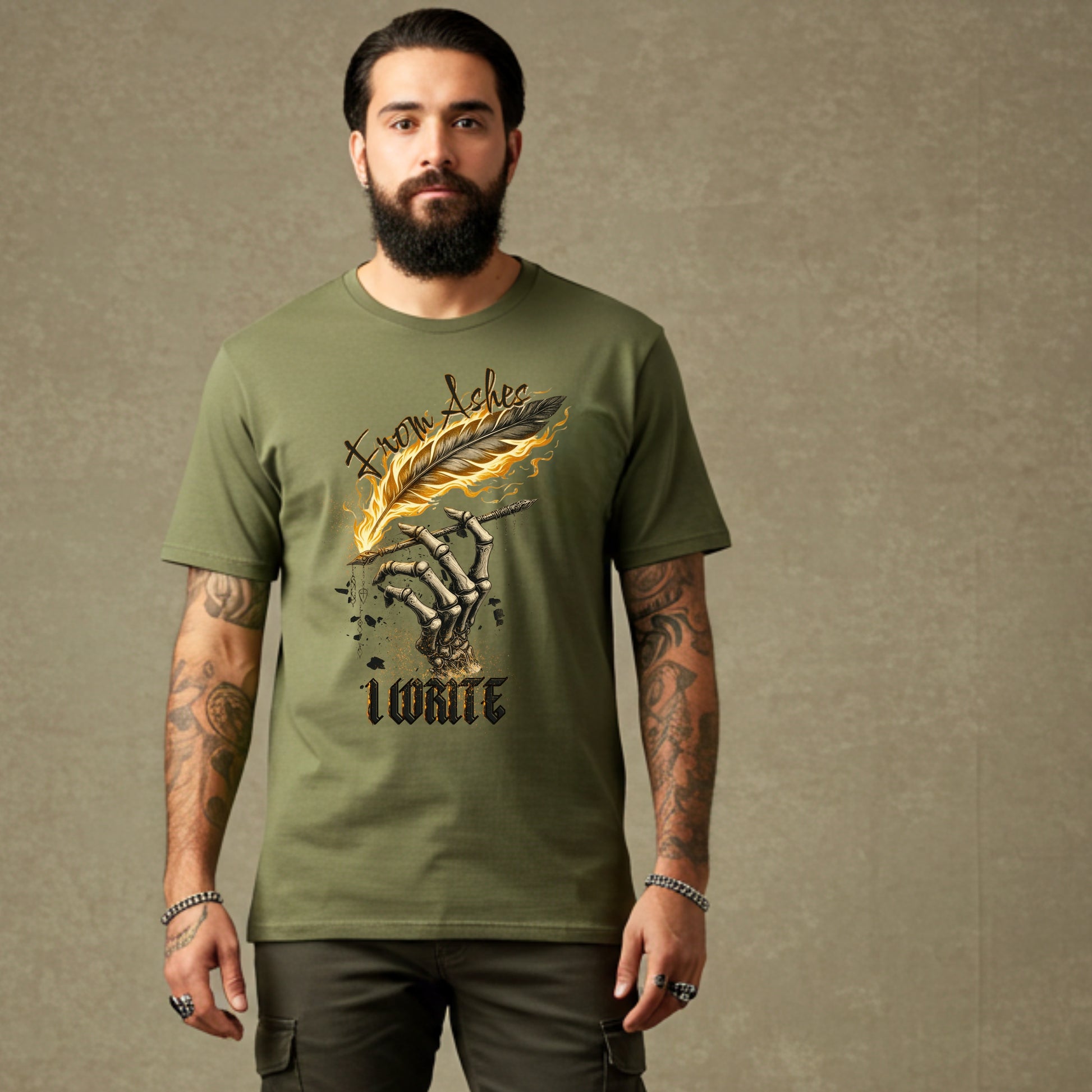 Rise from the fire and leave your mark with the From Ashes I Write Tee — a bold design for those who create their own resurrection.