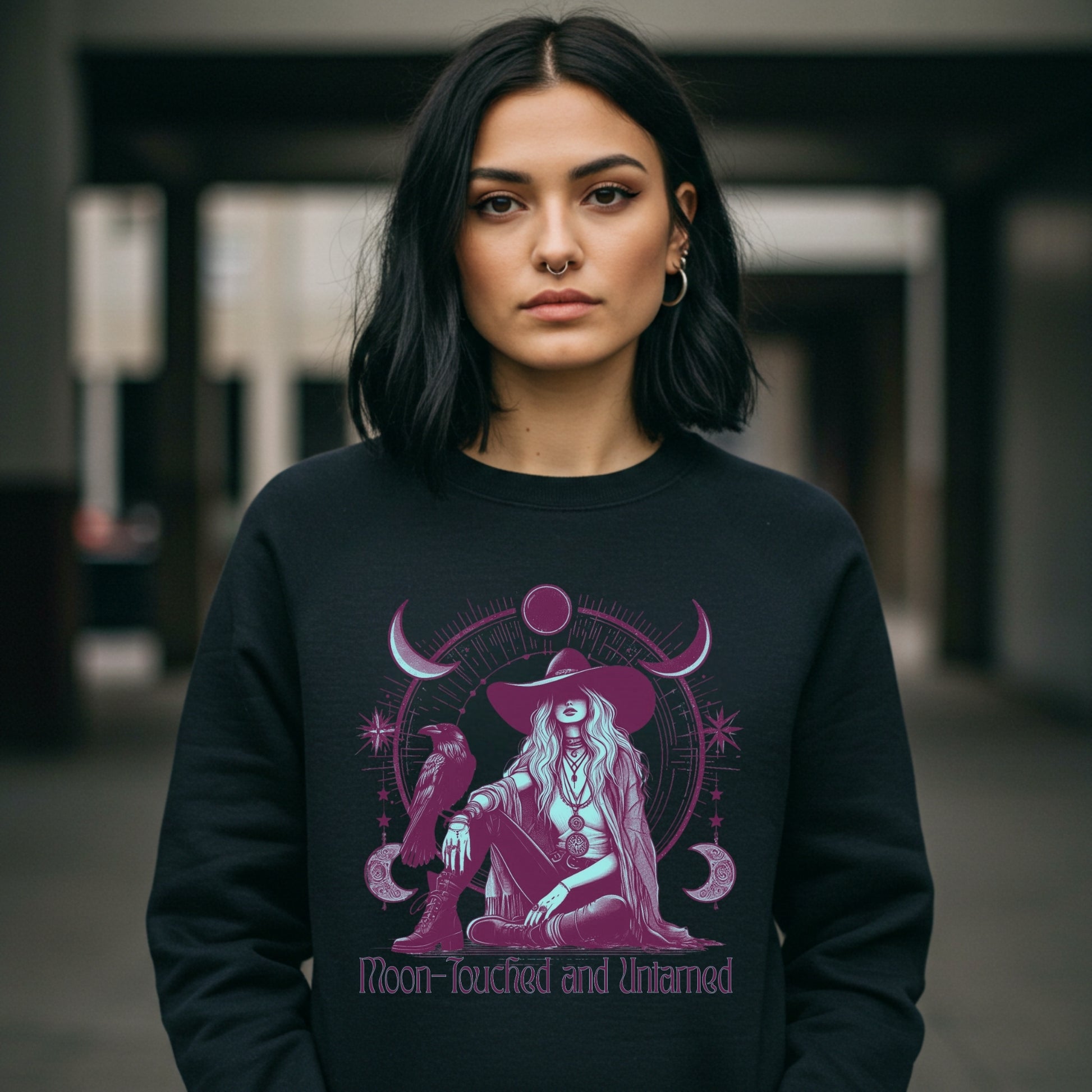 Moon Touched & Untamed Sweatshirt | Raven & Moon Graphic | Boho Rock Vibes