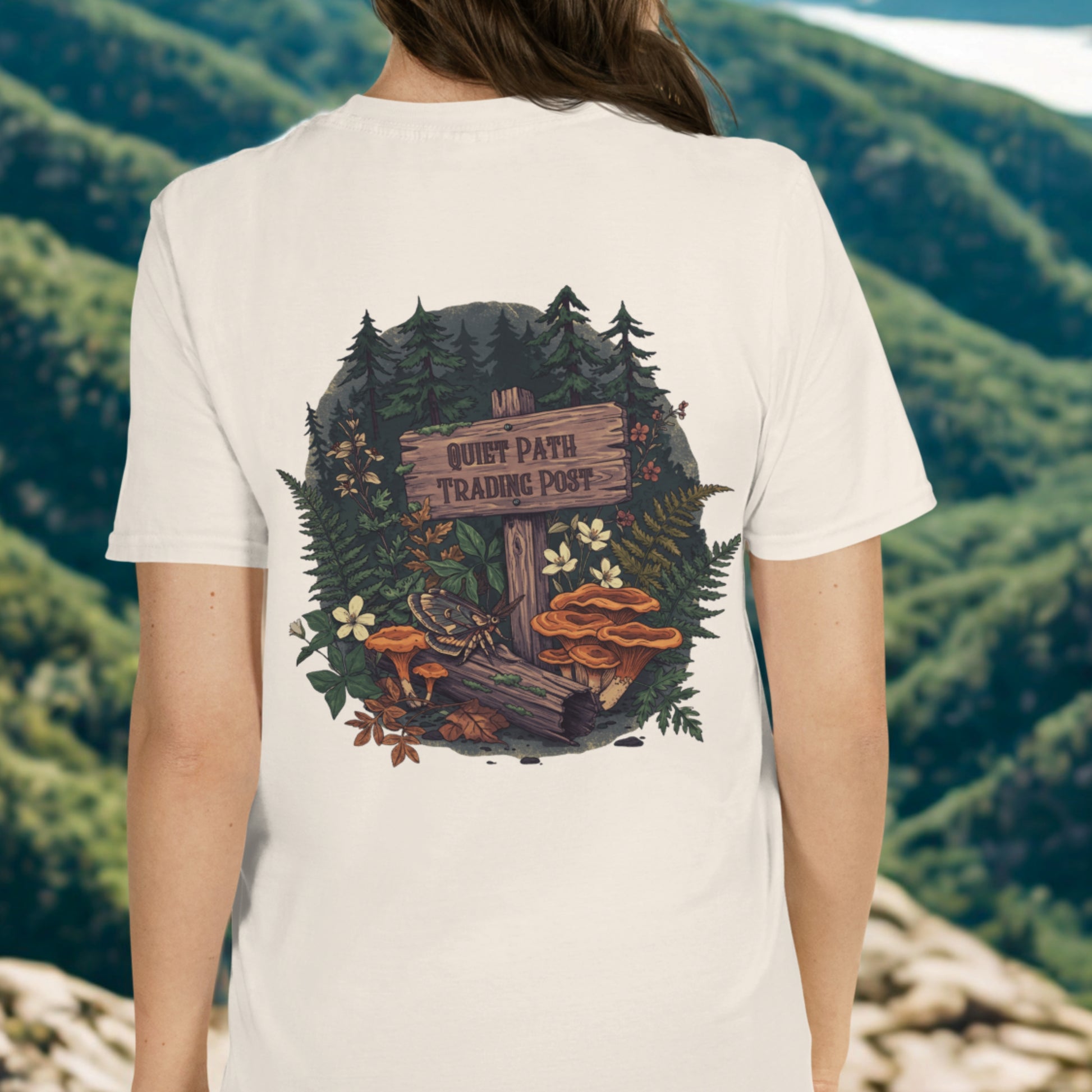 Quiet Path Trading Post Tee | Vintage Forest Trail Moth Shirt | Botanical Gift