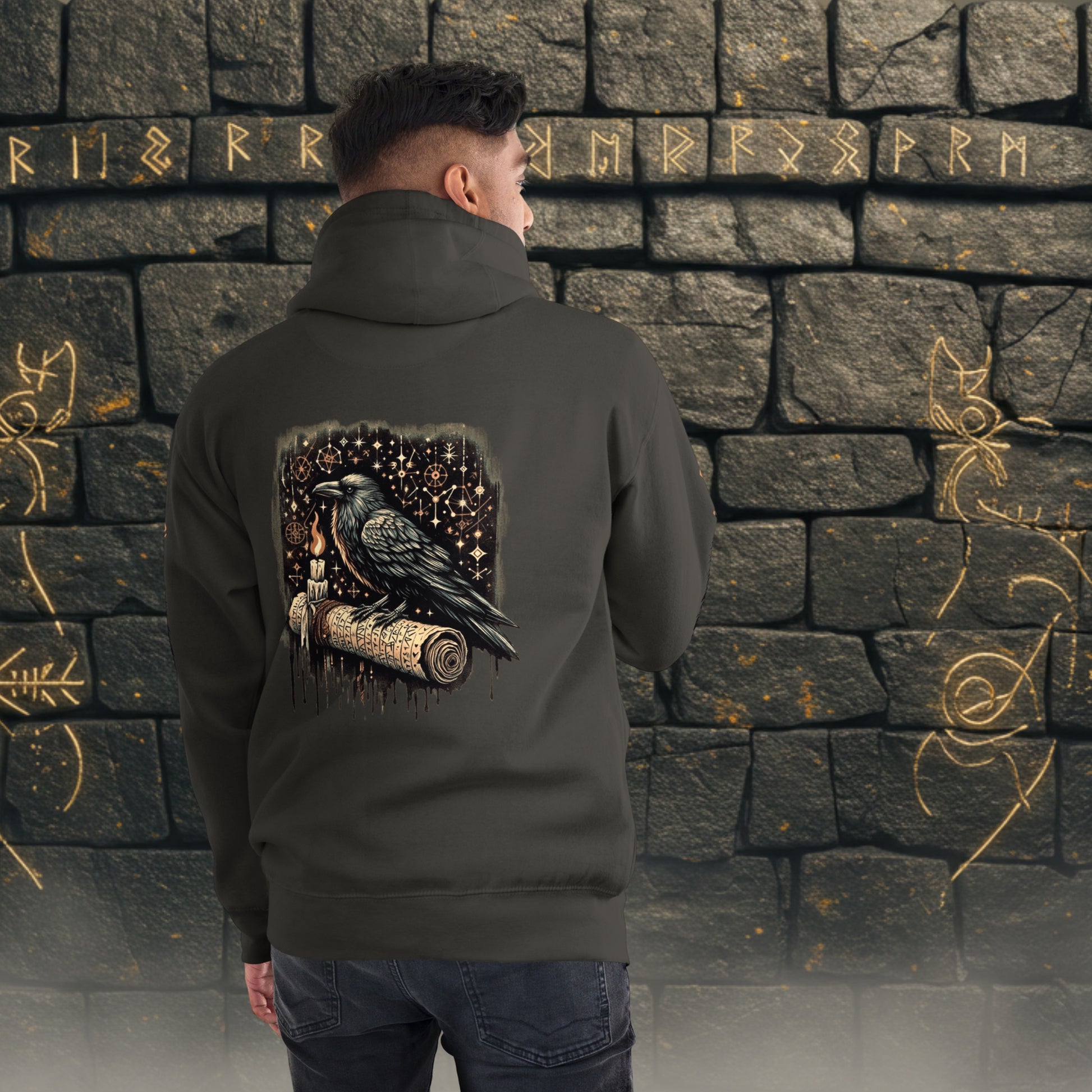 Saga Scrolls Raven Hoodie | Norse Constellation Unisex | Nordiccore Sweatshirt Top