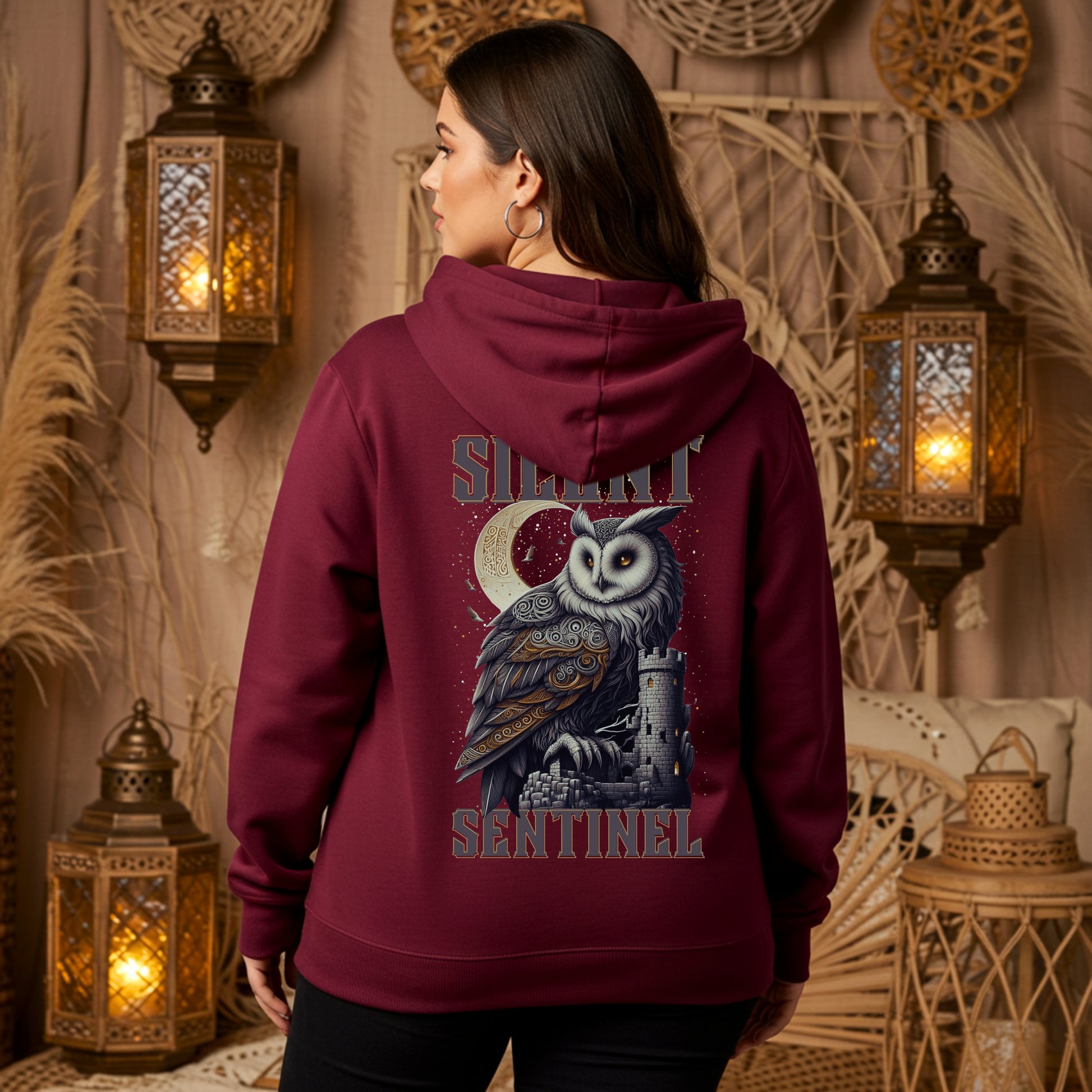 Silent Sentinel Hoodie | Gothic Owl & Moon Unisex | Medieval Sweatshirt