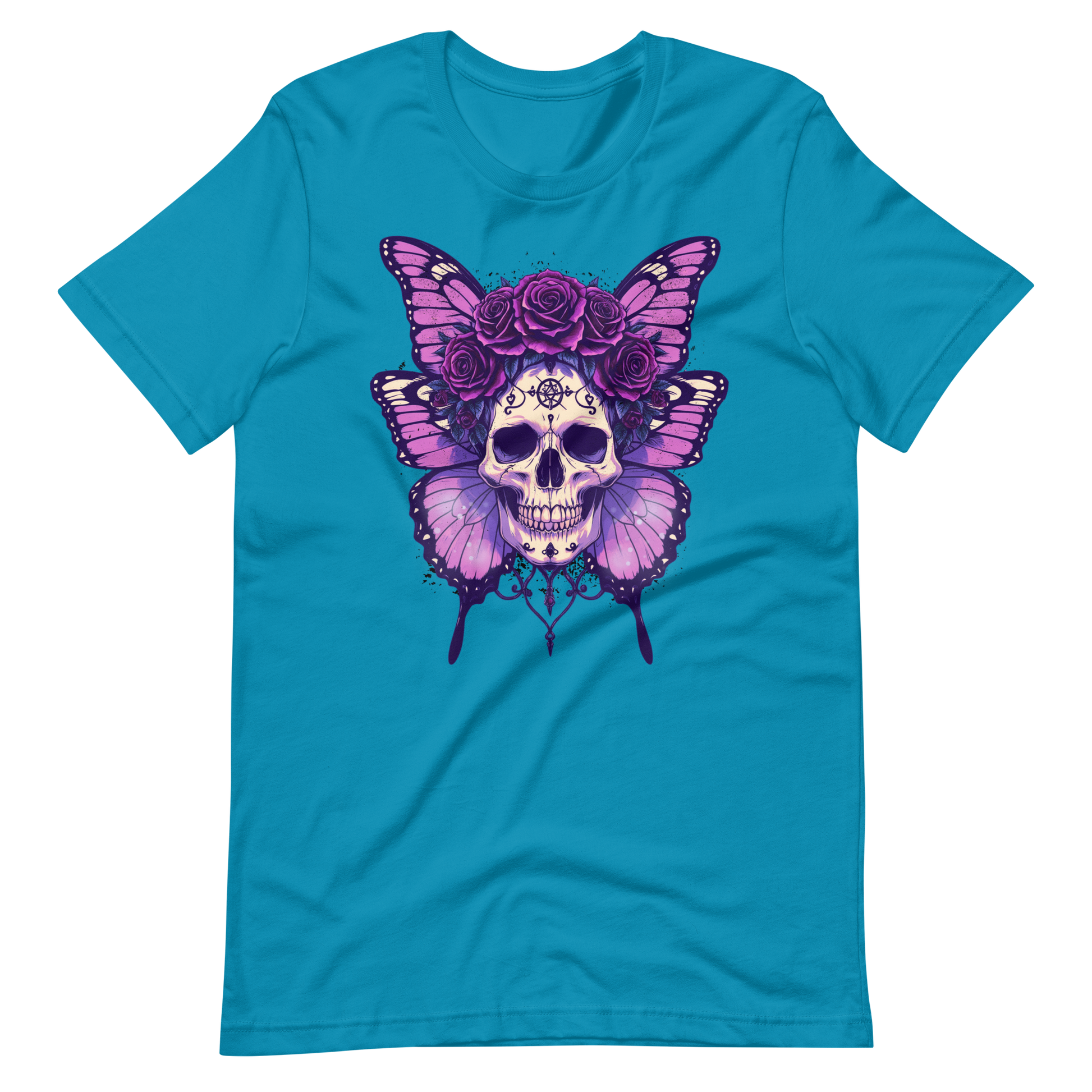 Versatile Bella + Canvas 3001 Unisex Staple Tee, this piece layers perfectly with leather jackets, ripped jeans, or a punk plaid flannel. Whether you’re headed to a show or your favorite café, let them know your vibe flutters between life and the underworld.