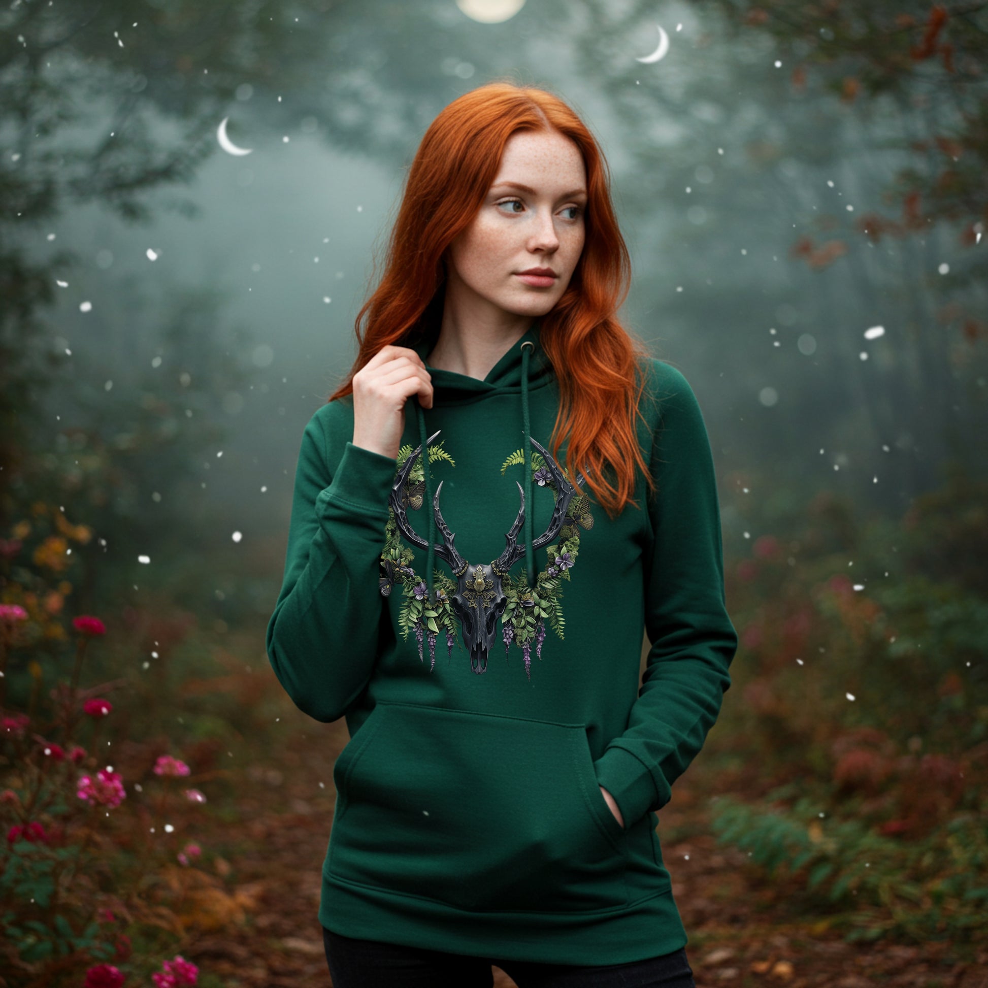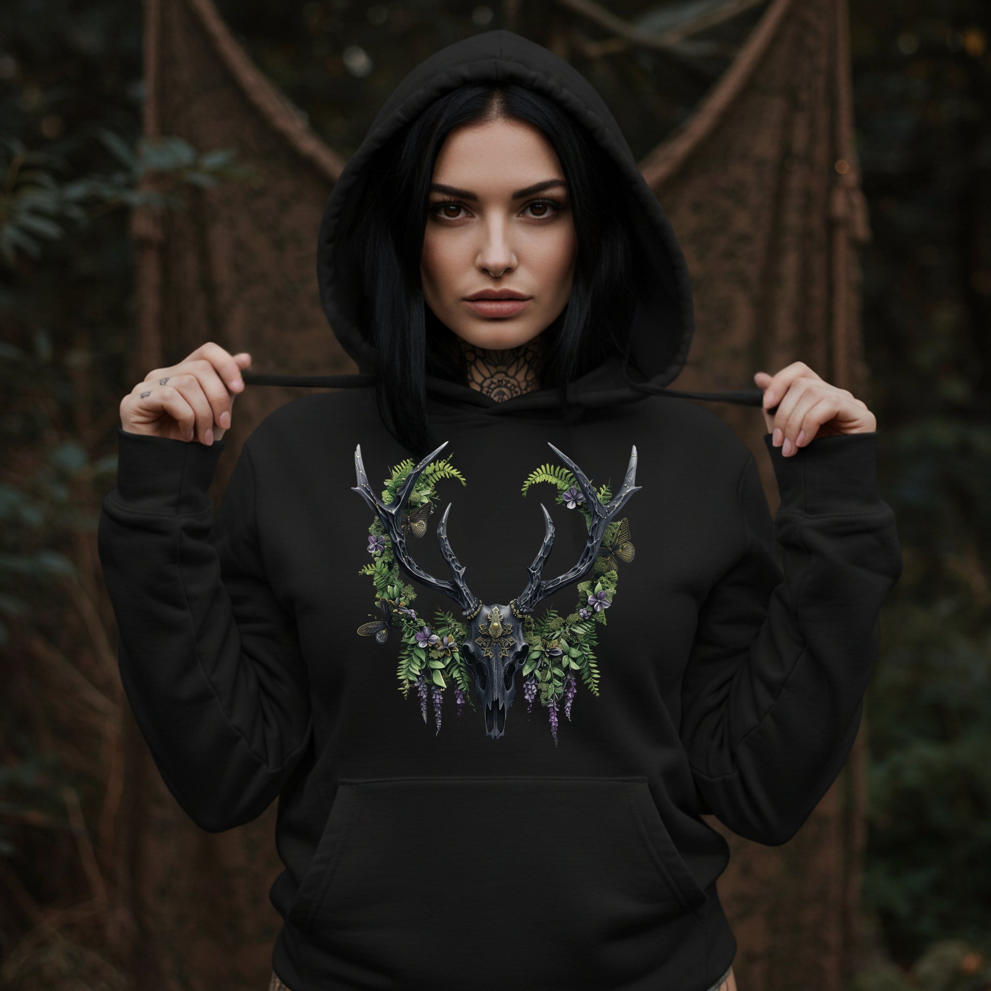Whispers of Bone Hoodie | Gothic Deer Skull Nature Hoodie | Unisex Heavy Sweatshirt