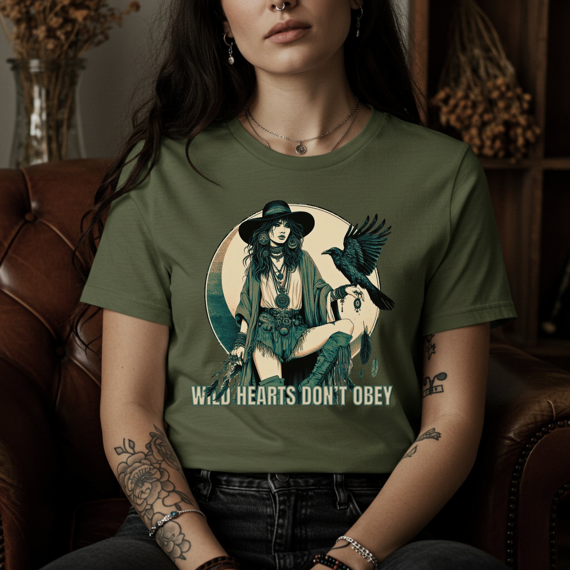 Wild Hearts Don’t Obey Tee | Boho Witch Raven Shirt | Moon Magic Graphic